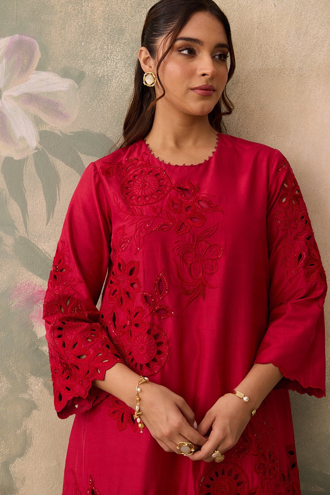 Made from organza tissue with subtle stripes, the Dilruba Co-ord Set with Dupatta combines lightweight elegance with effortless style. The vibrant red hue adds energy, making it a versatile choice for both day and evening occasions.